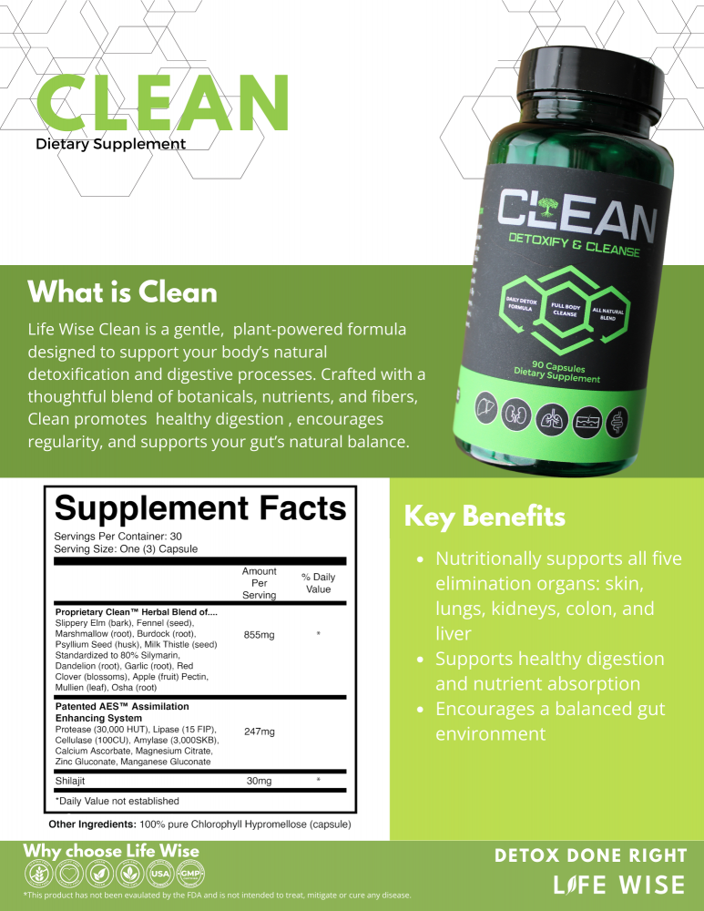 Crafted to aid the body’s natural detoxification, CLEAN is specifically formulated to support all five primary elimination organs: the liver, kidneys, lungs, skin, and intestines. This targeted blend helps the body manage environmental pollutants and heavy metals while providing vital nutritional support. By promoting efficient cleansing pathways, CLEAN encourages balanced detoxification, aiding in cellular health, digestion, and overall wellness.